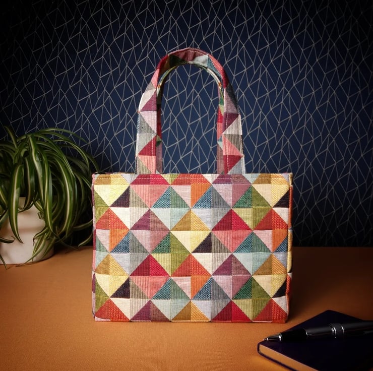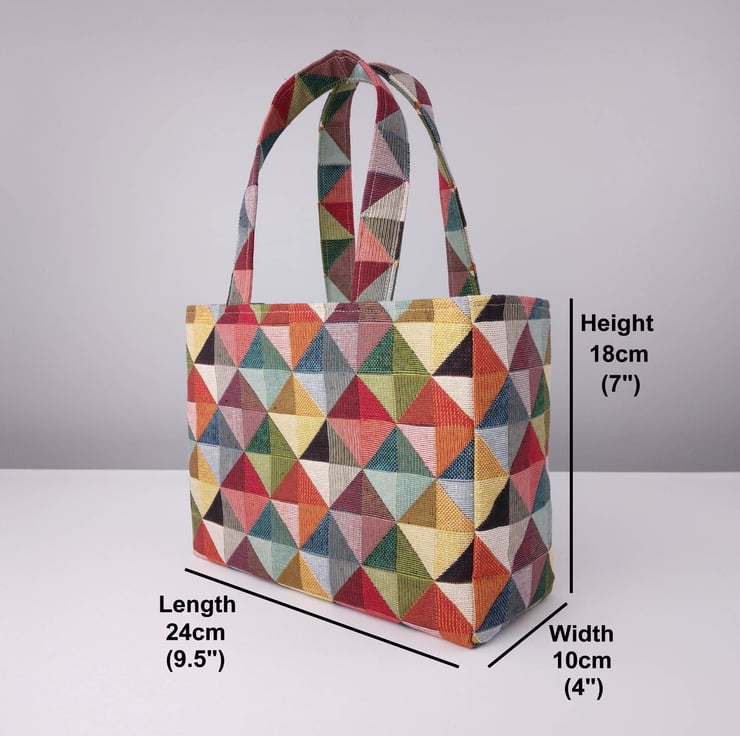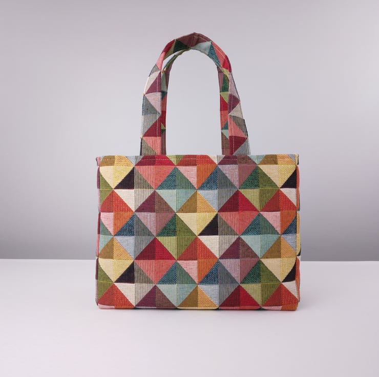 Mini Fabric Tote Bag - Multi Colour Diamonds
