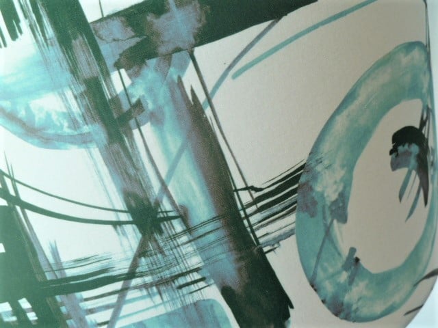 Tapered lampshade covered in abstract teal and green, white background cotton fabric. Reduced from £38 to £12.50 with Free Postage!