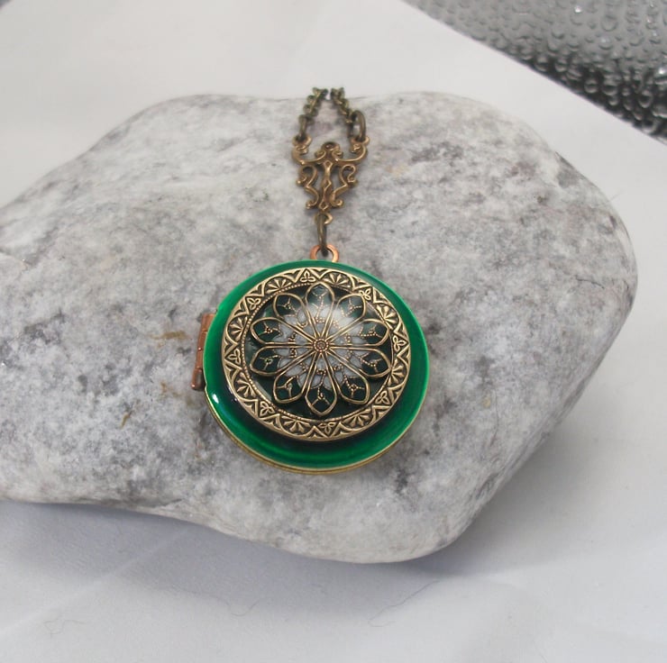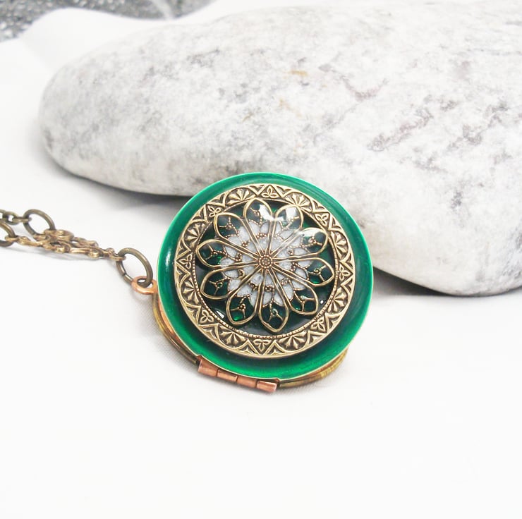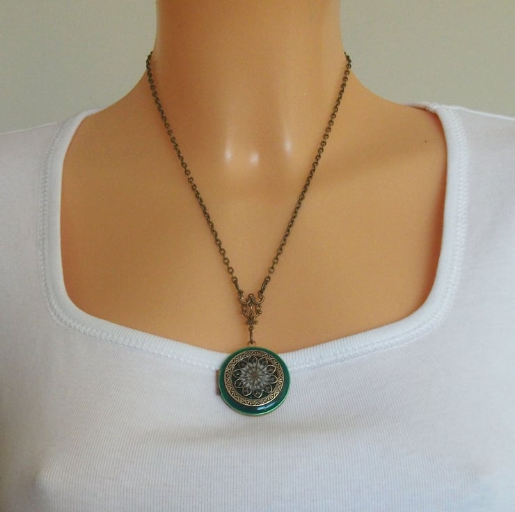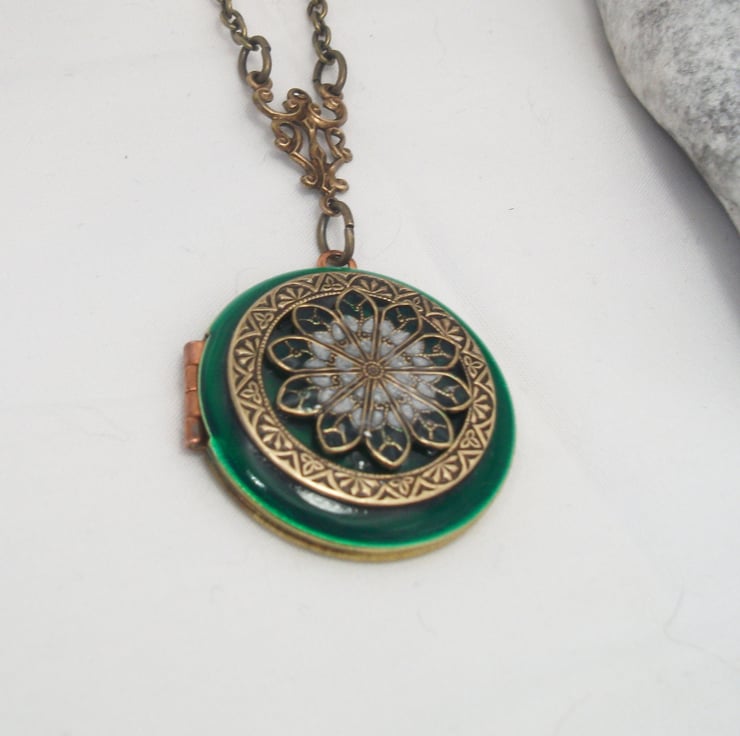 Emerald filigree vintage locket pendant.
