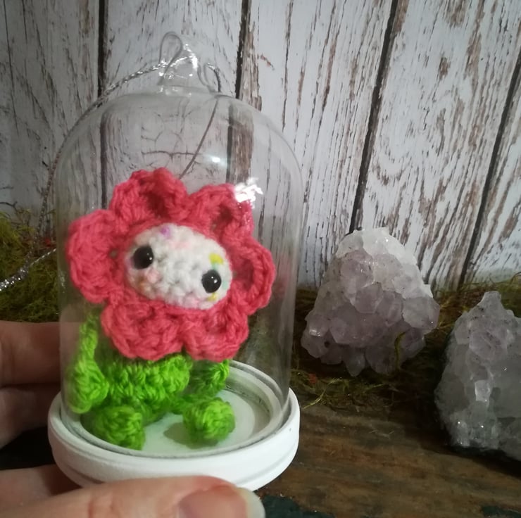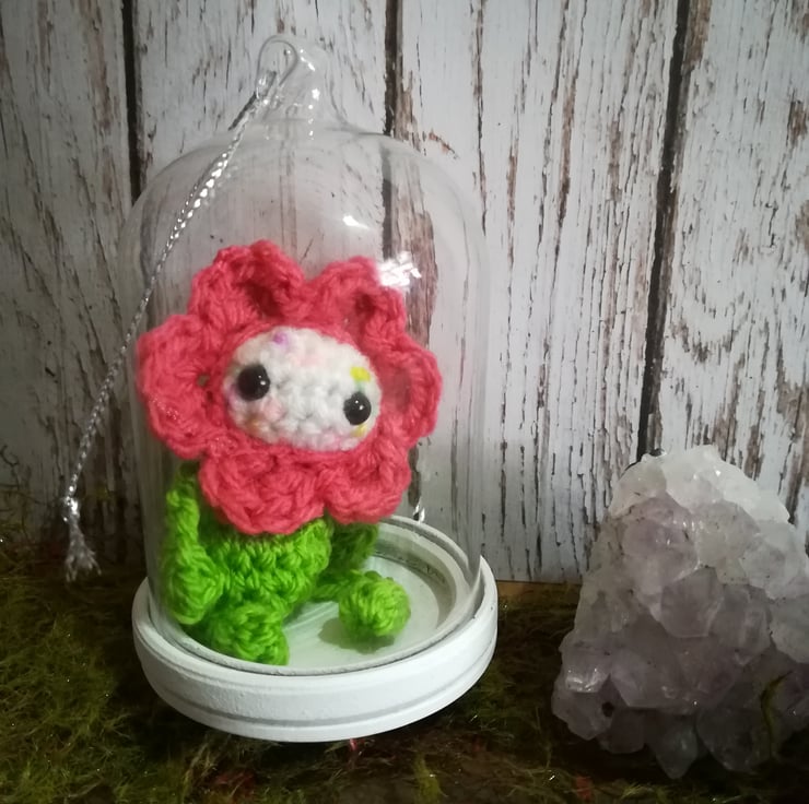 This tiny little flower sprite comes in a glass dome but can be removed.