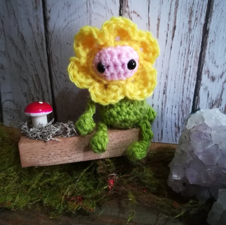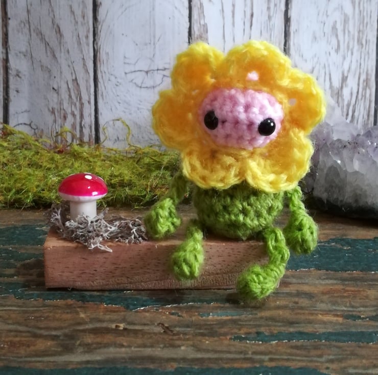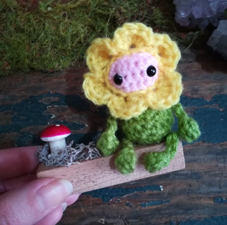 This tiny little flower sprite comes on a little wooden base and has some moss and a toadstool.