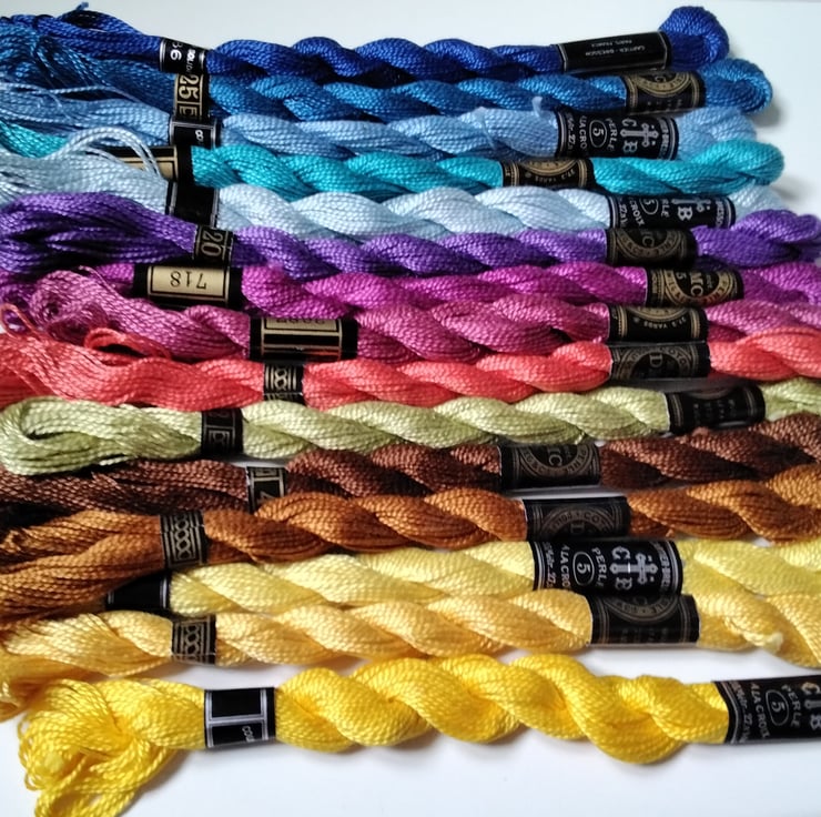 15 Assorted colours of same gauge emproidery threads.