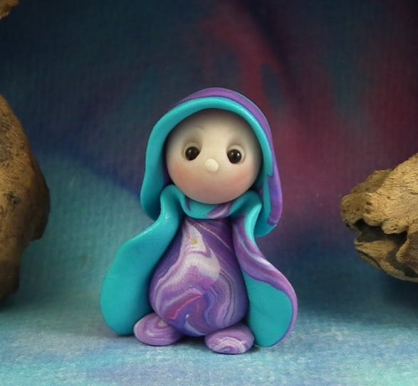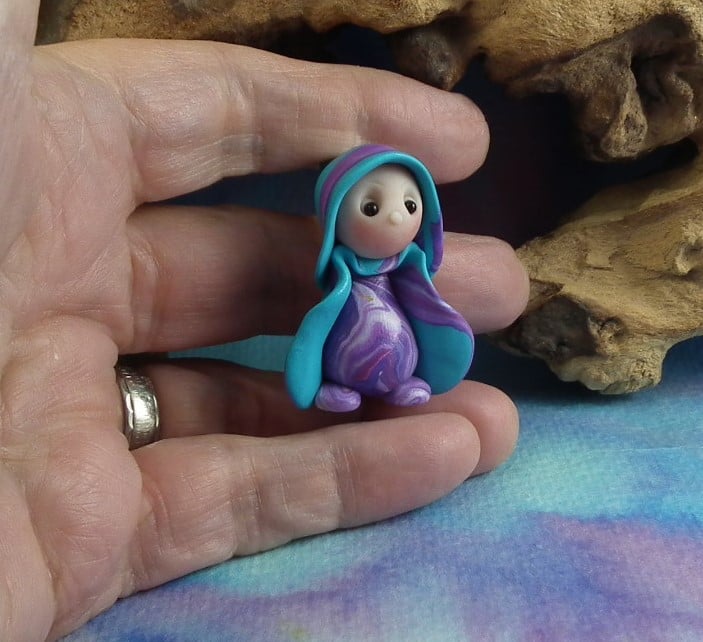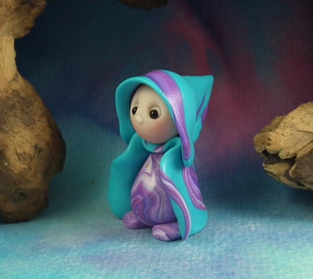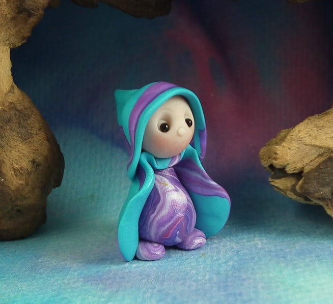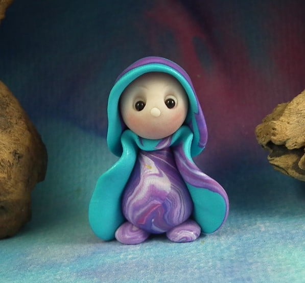 This is a 'one of a kind' creation having been entirely handmade without the use of moulds here at my studio on the Sussex Coast. Modelled with artist blend polymers, blushed before sealing with lacquer, Uno has sparkling black onyx eyes and floral robes. Uno the Garden Gnome is just one and a half inches tall.