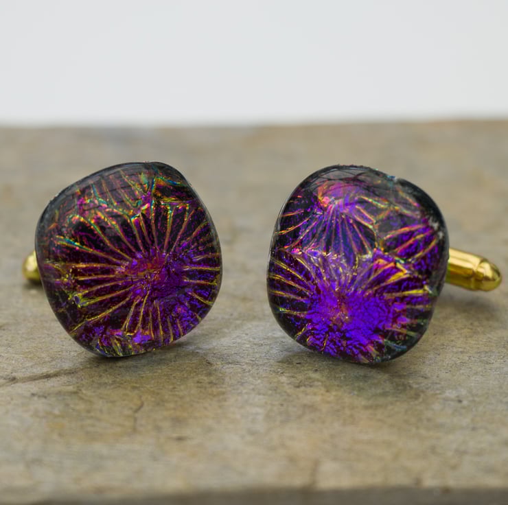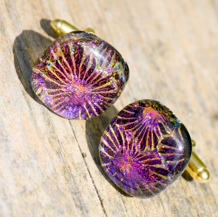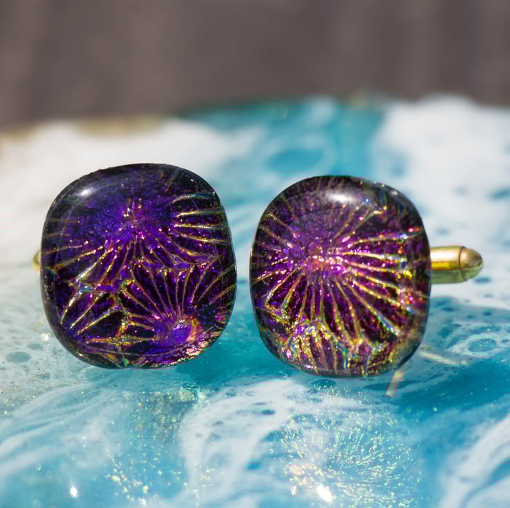 Here is something that will make a fantastic gift for a man. A pair of cufflinks that look as though fireworks have exploded within them - they have a lovely pattern of stars glistening in Purples & Golds.
