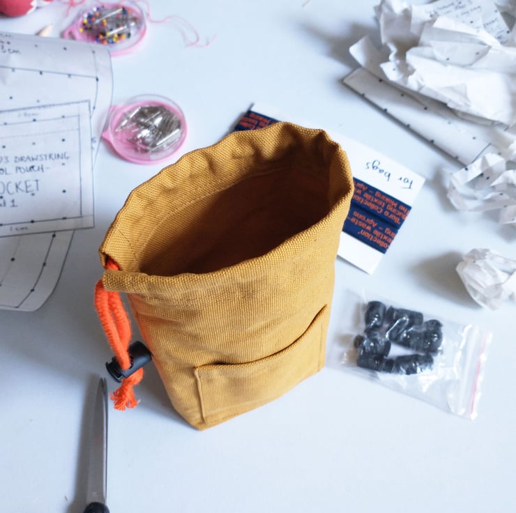 BAG DETAILS: Tough cotton canvas - Fits variety of pens, pencils, carving tools, paint brushes up to 20cm/8" long - Small outside pocket - Drawstring closure with spring loaded cord lock