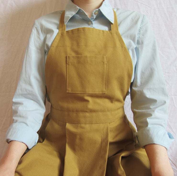 APRON DETAILS: Tough medium-heavyweight canvas - Pleated skirt - Split leg - Bib pocket - 2 skirt pockets - Strongly constructed - Thoroughly researched & tested design - Sustainable small batch making