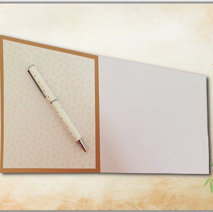 The back and biggest panel is layered with a 250gsm gold-brown pearlescent card along with an 140gsm floral patterned insert, that has been left blank for you to add your message and wishes.