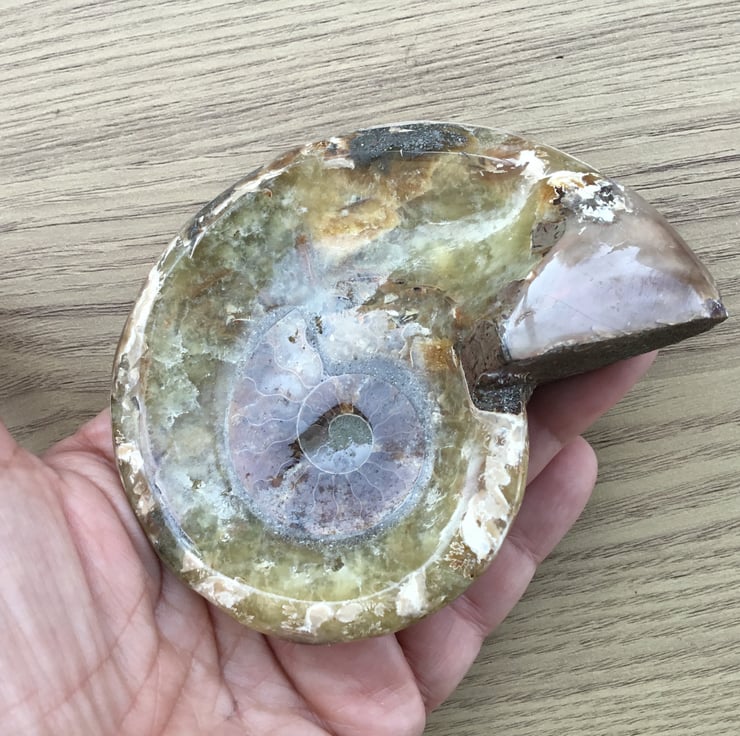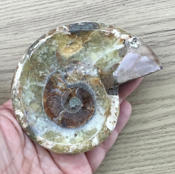 This ammonite is the only one I have attempted a trinket dish with, as a lot of the Ammonite is lost in the process, therefore shallow, maybe suitable for popping you rings and earrings in.