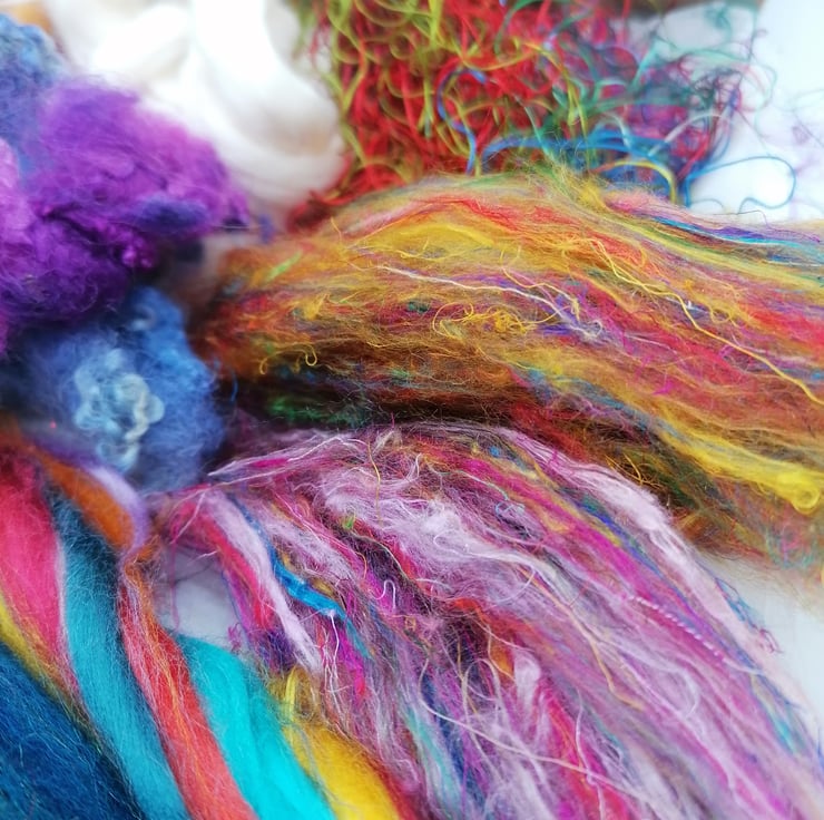 Perfect for wet felting, spinning and art batts. This beautiful bundle has a mix of amazing fibres to give any project the wow factor!