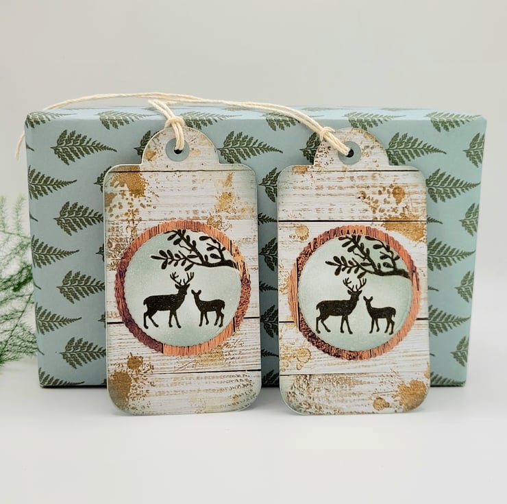 1 x set of 2 wood and deer tags