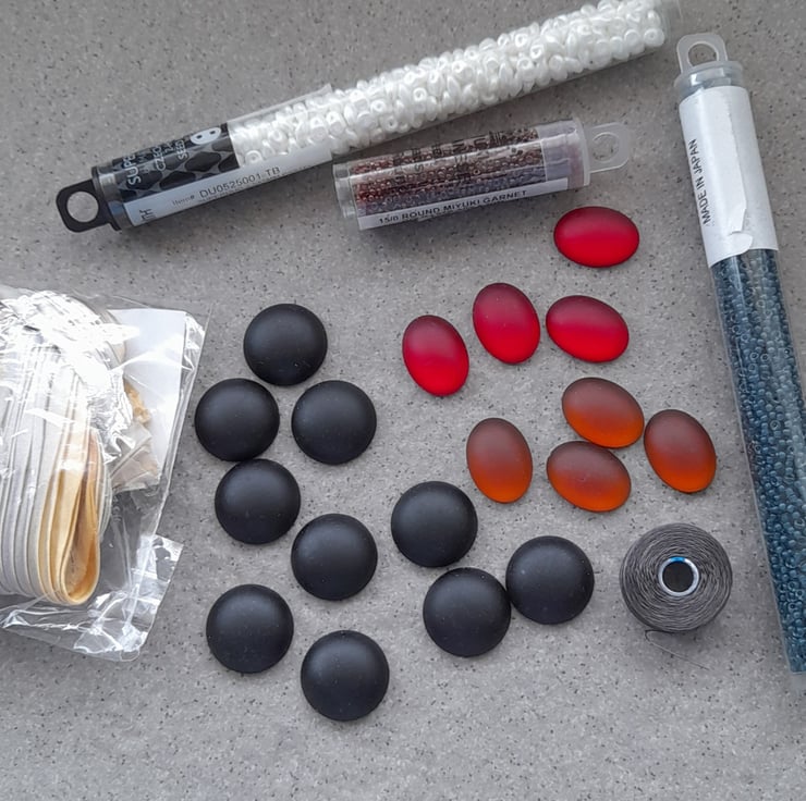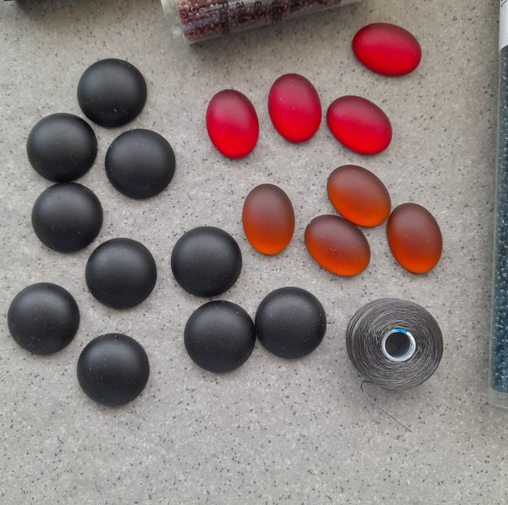 Beautiful bundles 4 copper, 4 red and opaque black Luna cabochons measure approx. 18 mm by 13 mm and round measuring approx.18mm