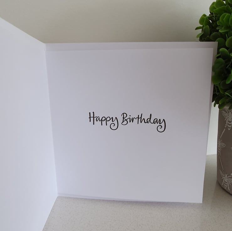 Inside a sentiment has been hand stamped on to 120gsm, luxury, smooth paper. The sentiment reads ' happy birthday '.