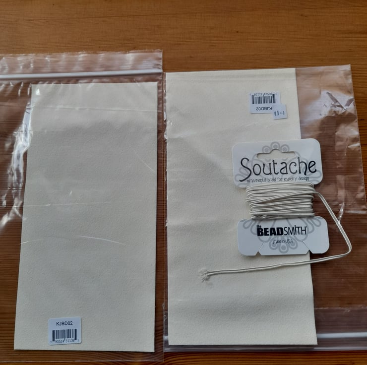 2 cream faux suede like backing material approx. 8.5 inches by 4 inches each