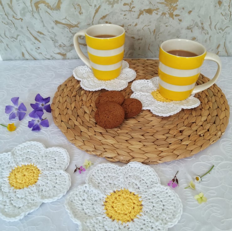 These super cute daisy coasters are perfect for your tea and coffee and are large enough to use with bowls and side plates too.