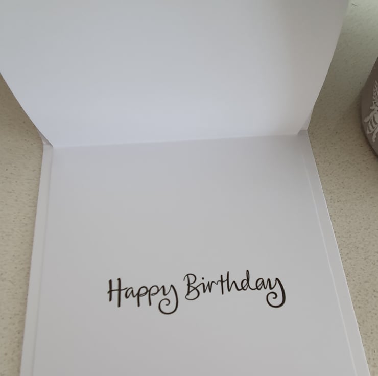 Inside is an insert with the words 'happy birthday ' stamped on to 120gsm, quality, smooth paper.