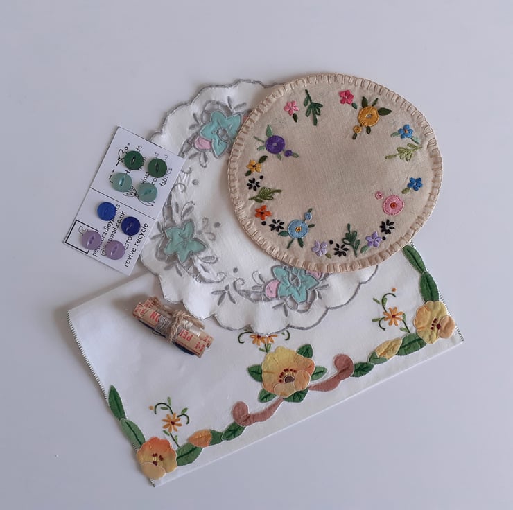 Hi there and welcome to my shop. Here you will find old embroideries, vintage fabrics and sparkling remnants made into something pretty and practical once again.