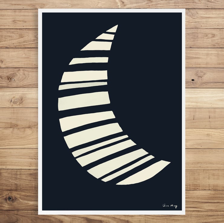 This midnight blue stripy moon illustration by Lisa May Illustration has been drawn digitally on an iPad using Procreate (and lots of Yorkshire Tea) and is custom printed as a quality open edition art print. This artwork is professionally printed on high quality poster paper and carefully packaged. The cute sun illustration is a perfect print for a nursery or children's bedroom. This adorable art print will create a cute and cosy vibe for your home and is available in lots of colours. This item is A4 but if you would like another size please contact me and I will arrange for you (up to A2 available).