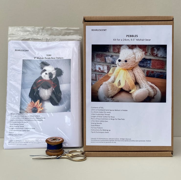 I have bundled together my Pebbles mohair bear making kit with my sewing pattern for Toby, a little black and white panda bear at a reduced special offer price