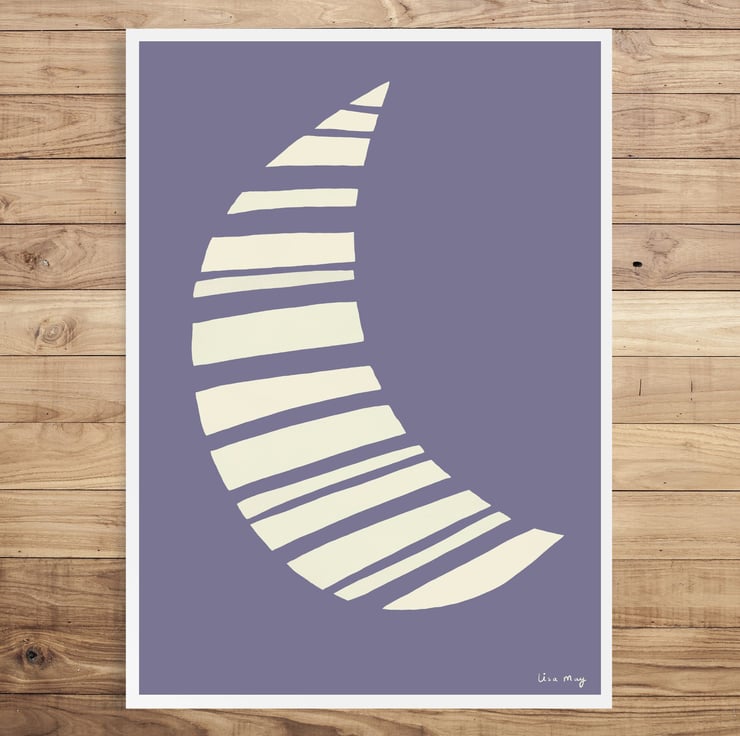 Pastel purple A4 digital nursery art print - Stripy Moon Illustration