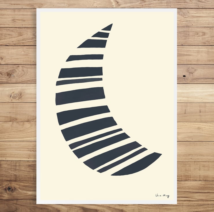 This charcoal grey stripy moon illustration by Lisa May Illustration has been drawn digitally on an iPad using Procreate (and lots of Yorkshire Tea) and is custom printed as a quality open edition art print. This artwork is professionally printed on high quality poster paper and carefully packaged. The cute sun illustration is a perfect print for a nursery or children's bedroom. This adorable art print will create a cute and cosy vibe for your home and is available in lots of colours. This item is A4 but if you would like another size please contact me and I will arrange for you (up to A2 available).