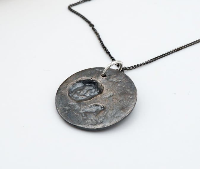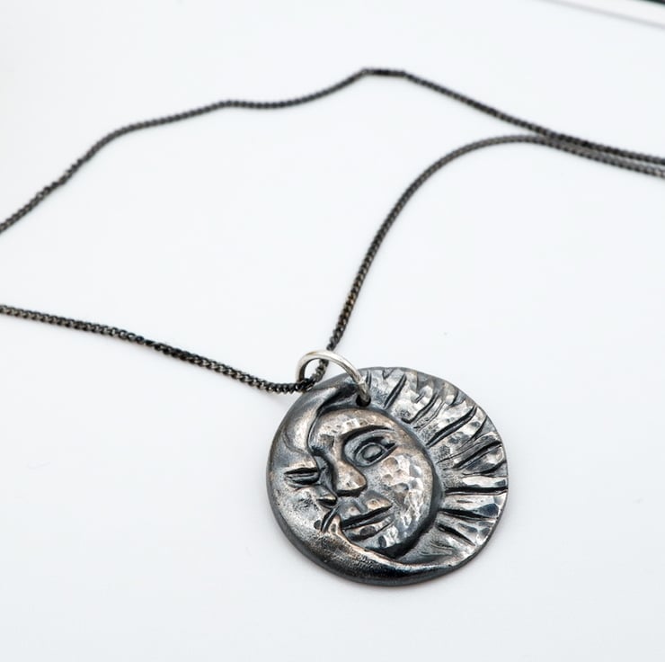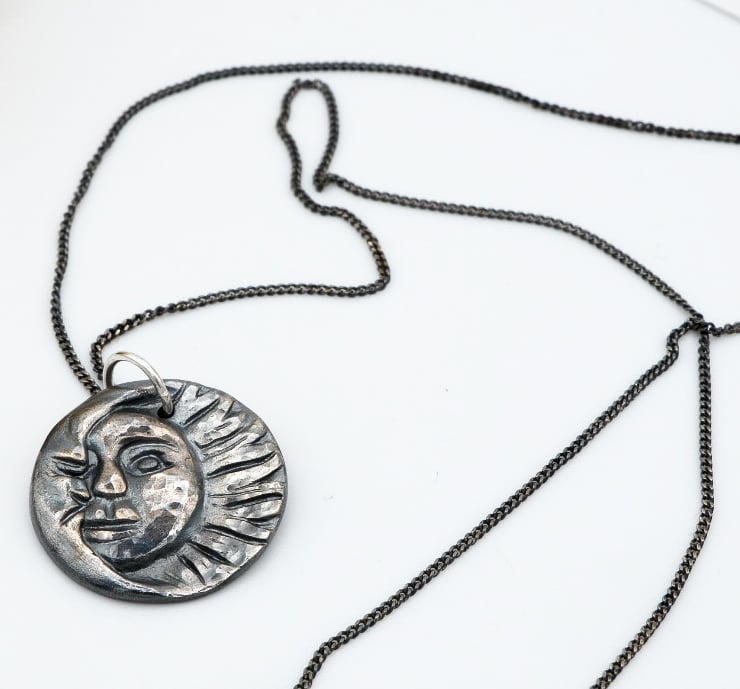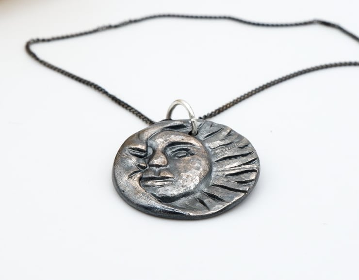 Flip the pendant over to reveal a celestial surprise! An intricate Moon surface has been imprinted into the silver.
