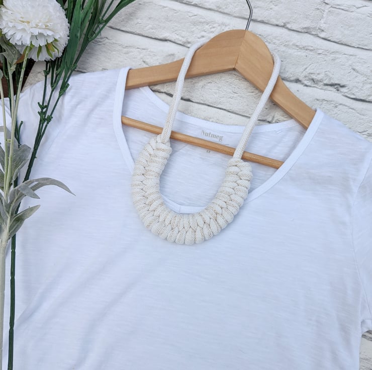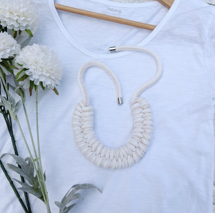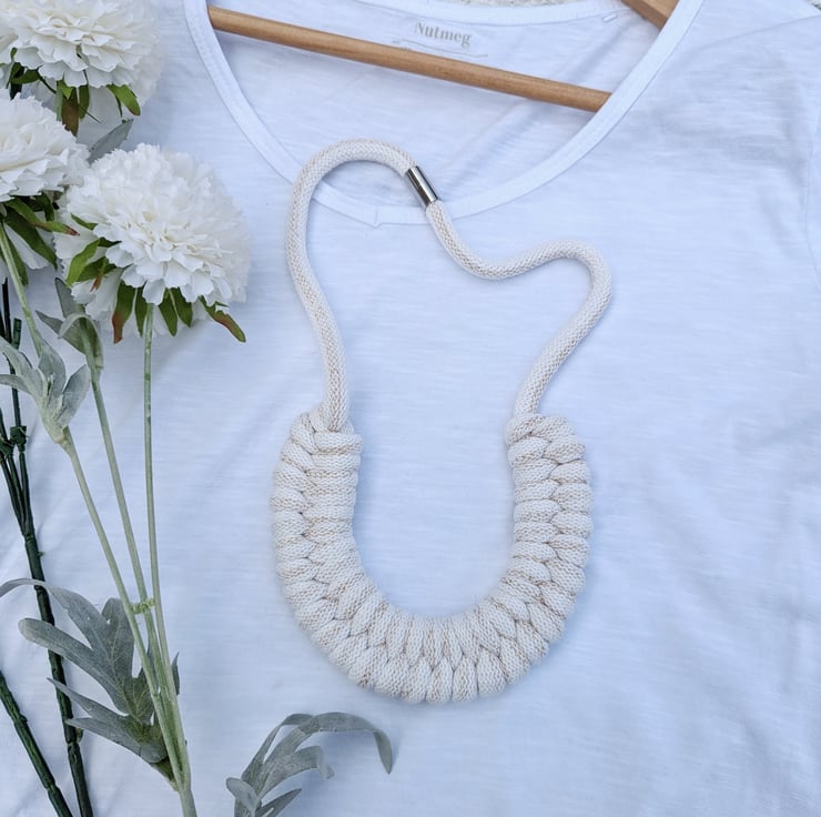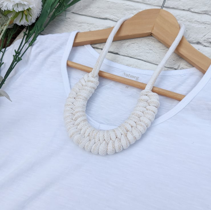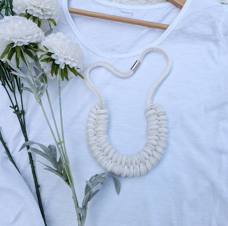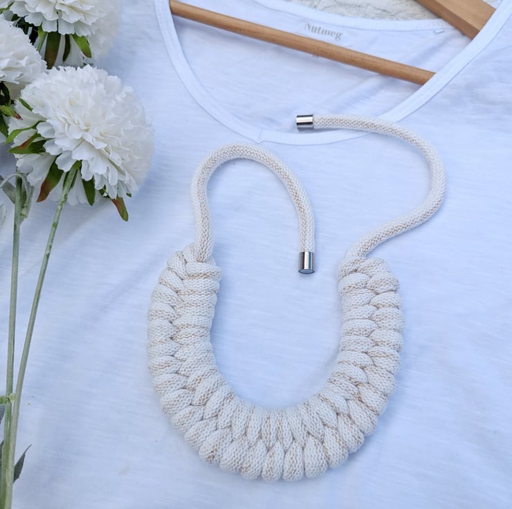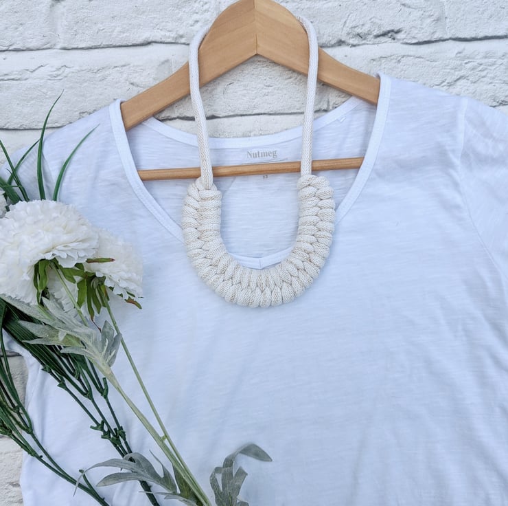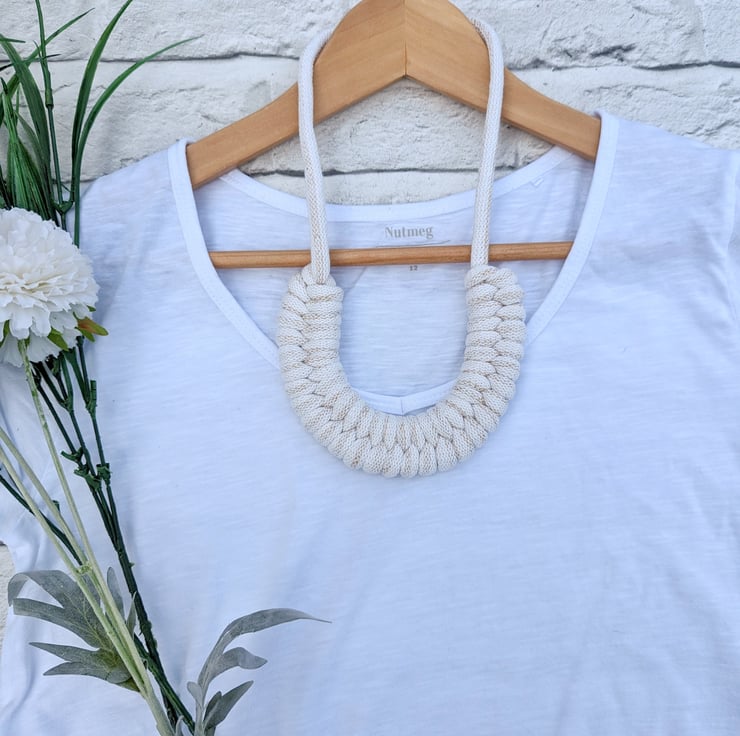 Beautiful Golden Cream Coloured Hand Woven Braided Rope Necklace