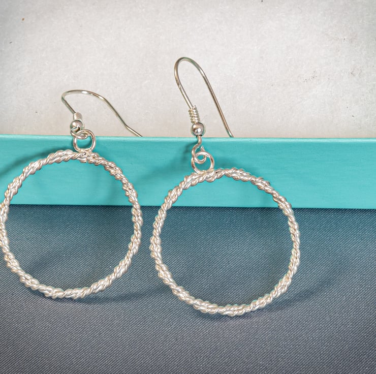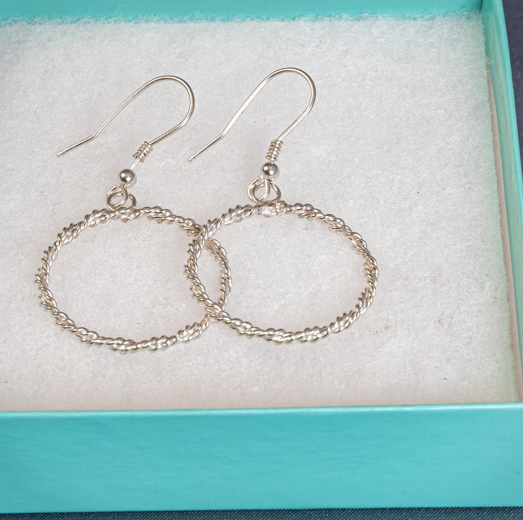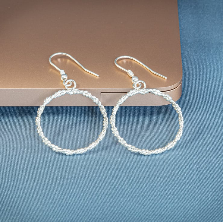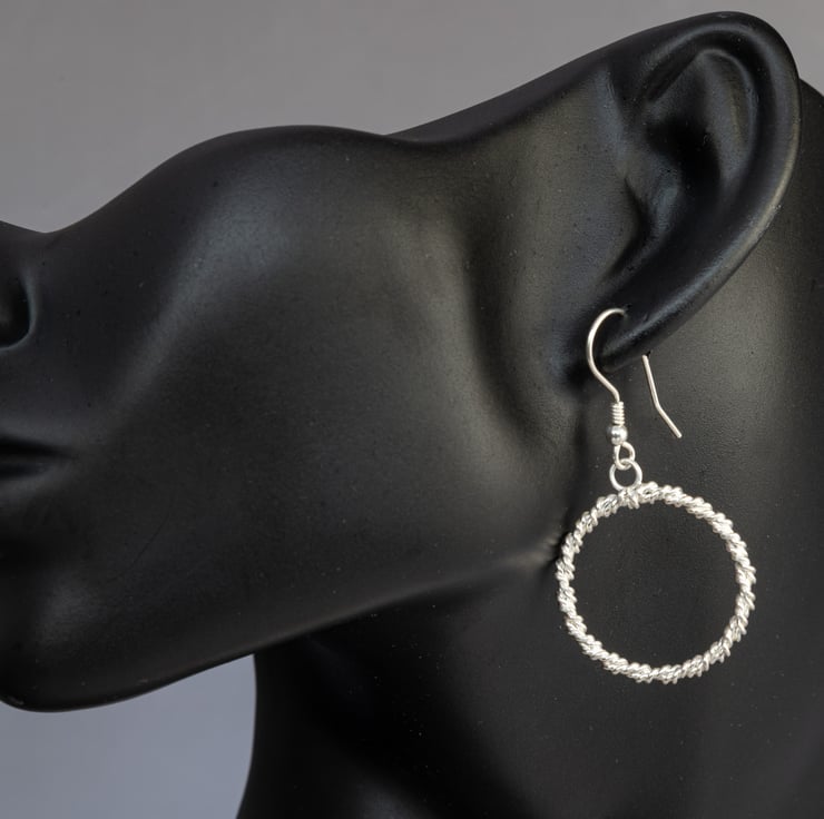 This is a stylish pair of sterling silver earrings made by twisting and re-twisting silver wire to get and 3 dimensional effect. The earring are enhanced by the attractive ear hooks.