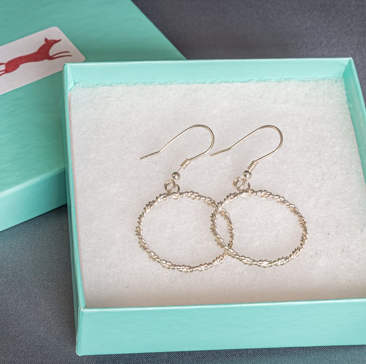 These earrings are supplied in a teal coloured presentation box as shown in the photographs. Please note that these earrings are made individually, so there will be slight differences between them.