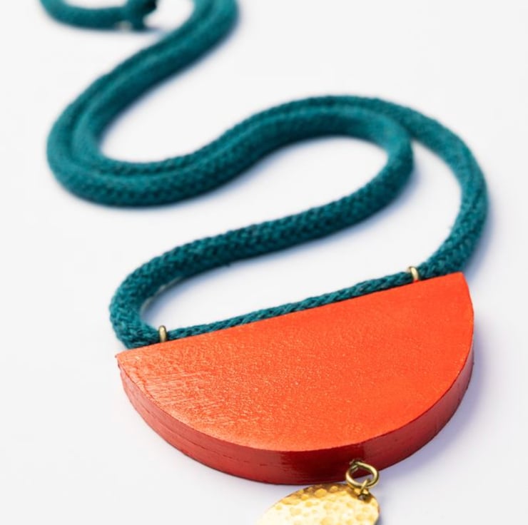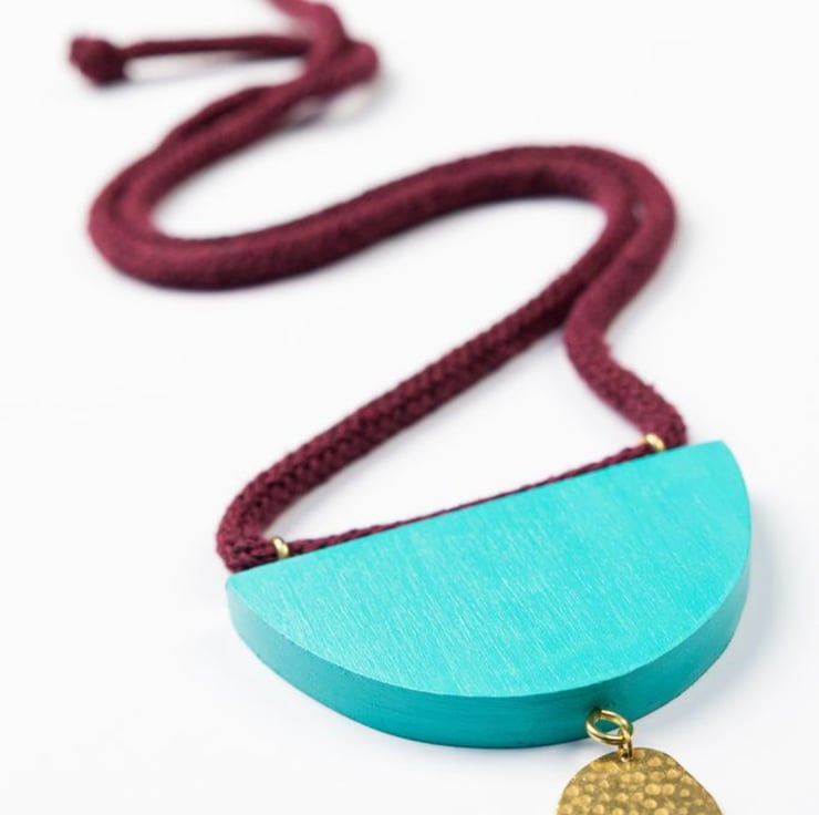I like to work with a variety of materials. More specifically I like wood, textiles and brass in my designs as they are easy to work with, light to wear but importantly they are all sustainable materials.