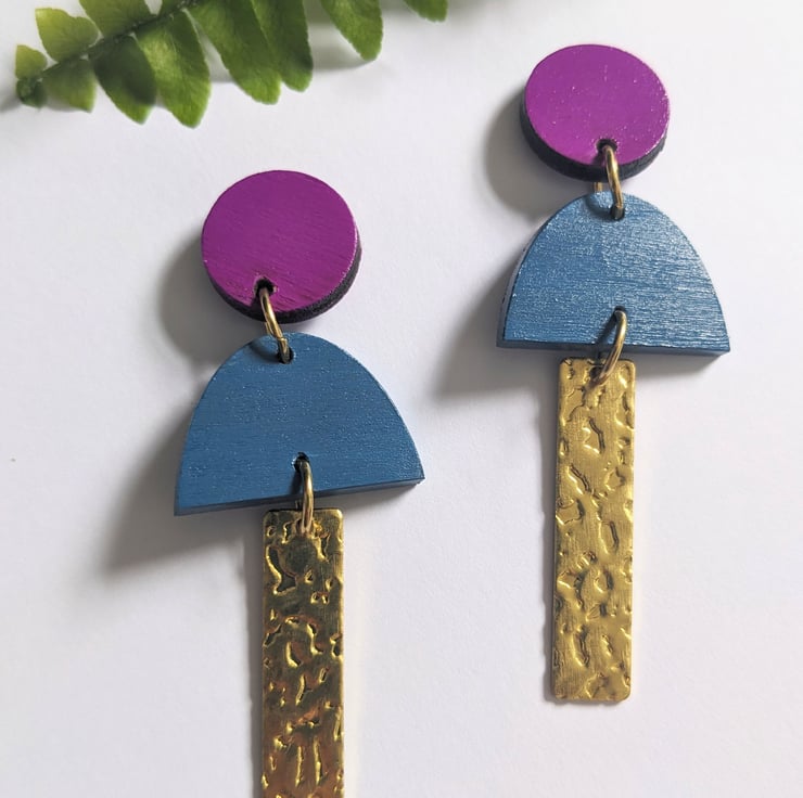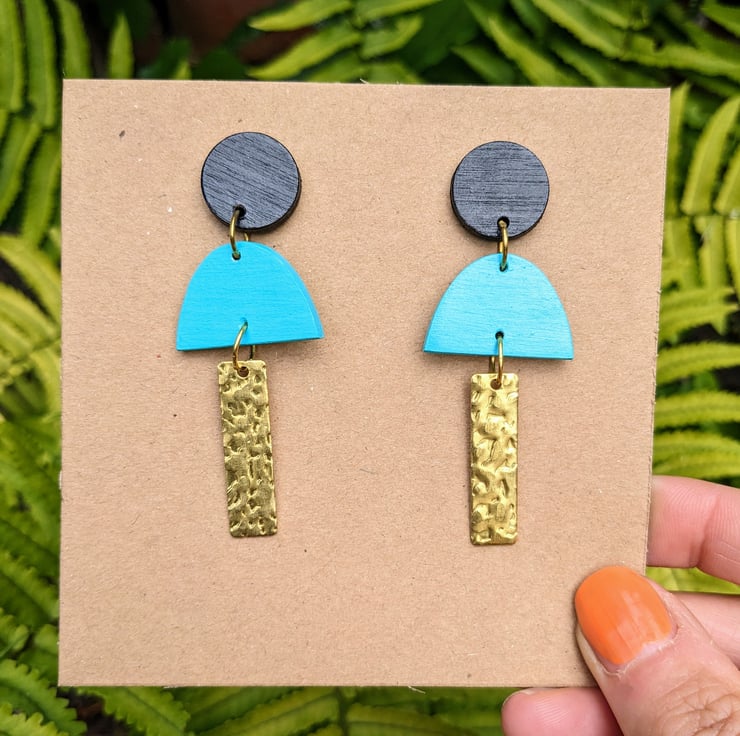 Earring posts are made from stainless steel and raw brass 6mm flat pad, so are good for sensitive ears. Rubber press backs.