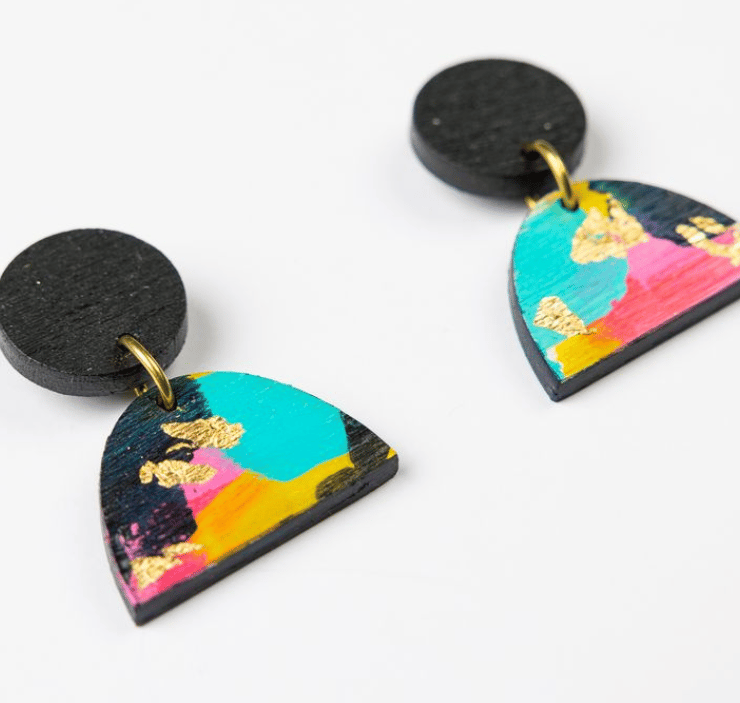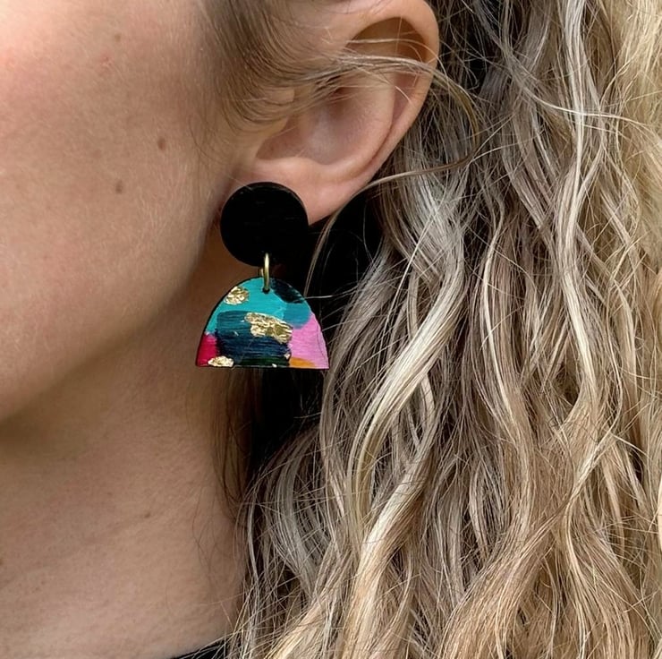 Super lightweight and comfortable to wear, these are created using a laser cutter on 3mm eco-friendly birch plywood. They are then individually sanded and carefully painted using low toxic acrylic paint, finished with low toxic varnish and gold leaf detail.