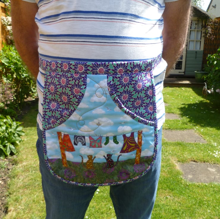I wanted something you didn't have to hold or keep moving when hanging the washing out. A tie around the waist peg bag / apron seemed the obvious choice