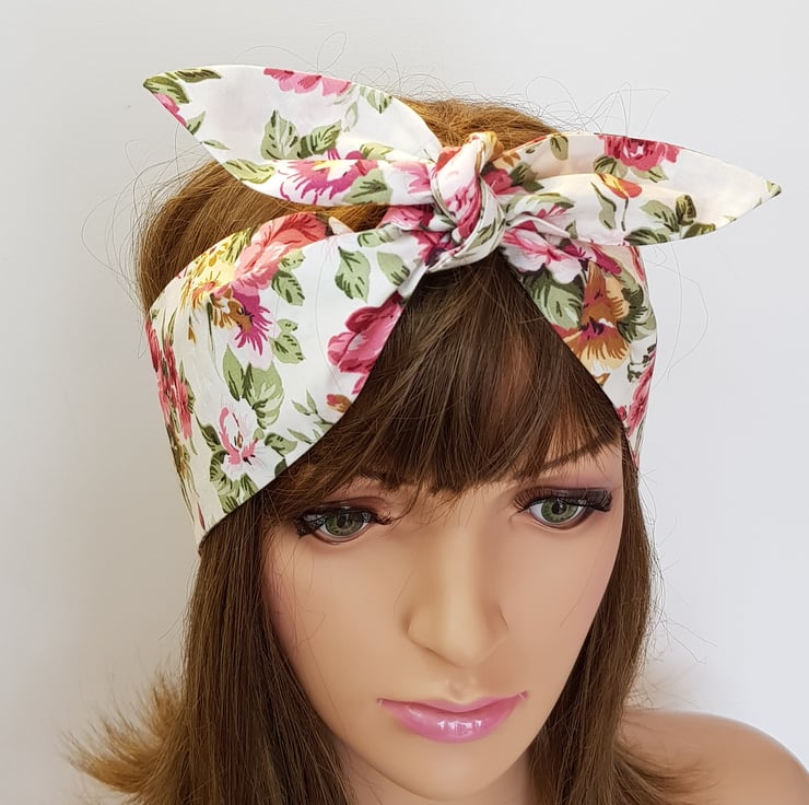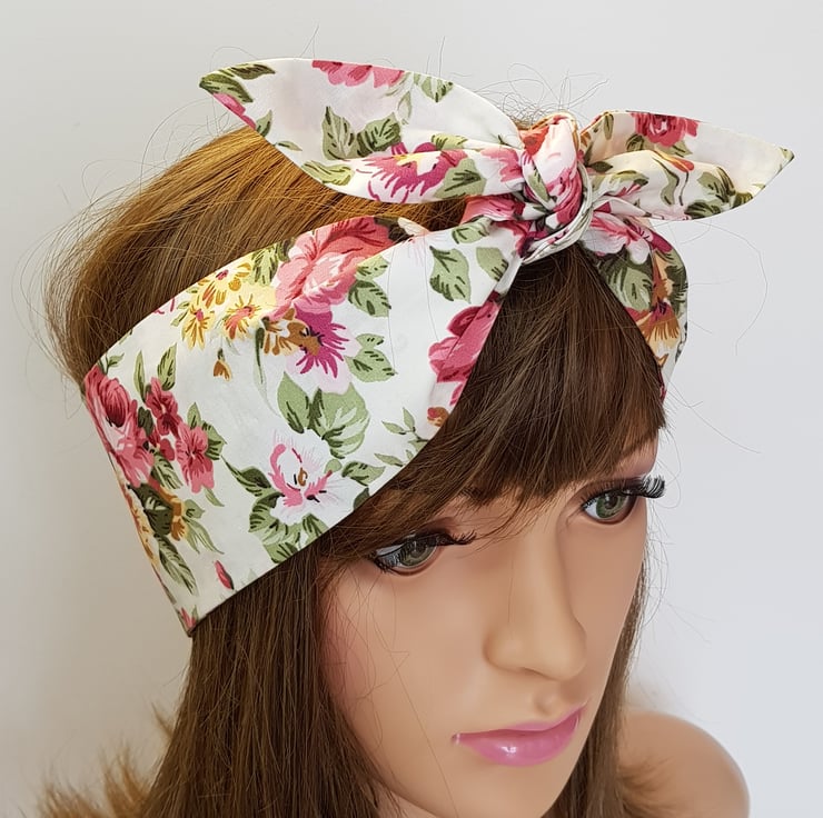 This rockabilly headband is made from printed 100% cotton fabric. The headband is NOT WIRED, NOT STRETCHY, UNTIED.