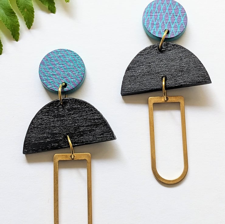 Earring posts are made from stainless steel and raw brass 6mm flat pad, so are good for sensitive ears. Rubber press backs.