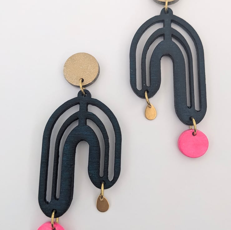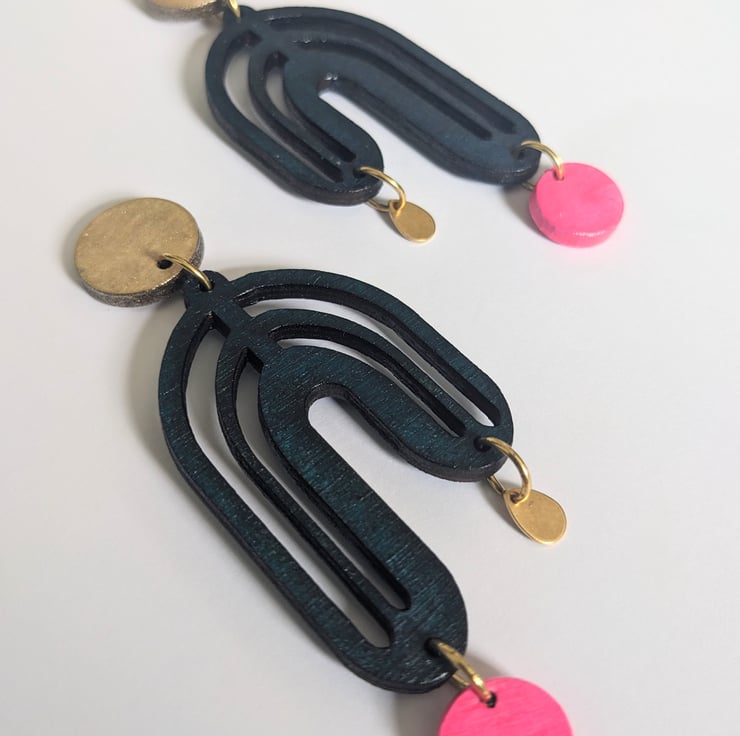 Super lightweight and comfortable to wear, these are created using a laser cutter on 3mm eco-friendly birch plywood. They are then individually sanded and carefully painted using low toxic acrylic paint, finished with low toxic varnish.