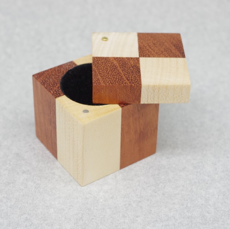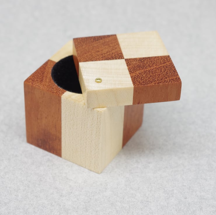 This delightful ring box is made from Bubinga and Scottish Sycamore.