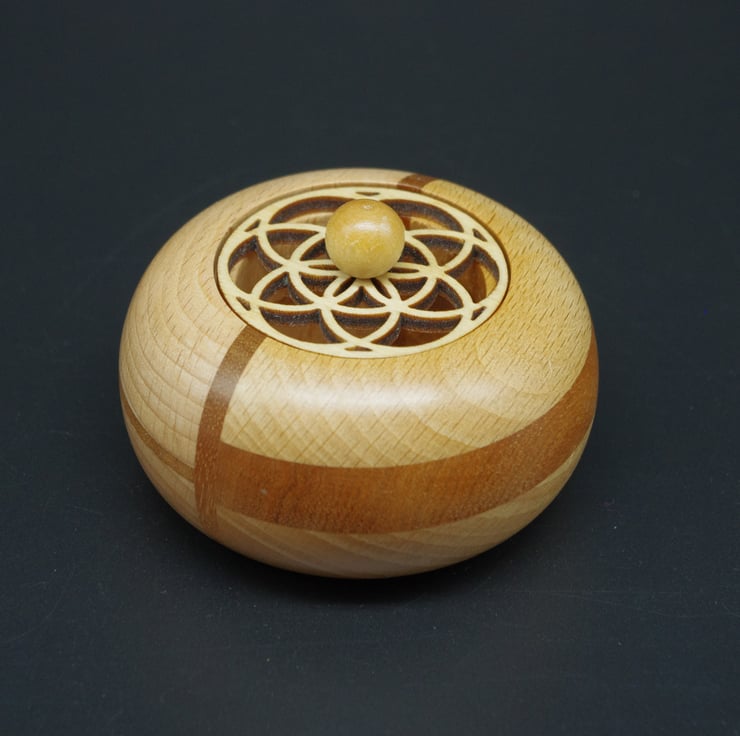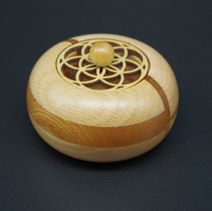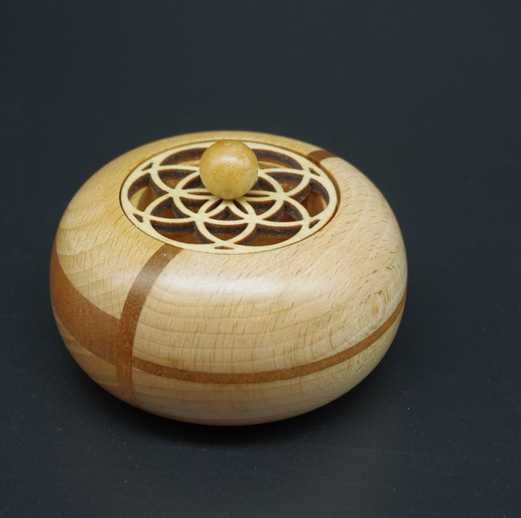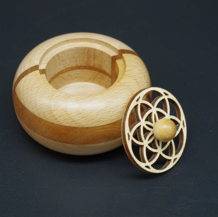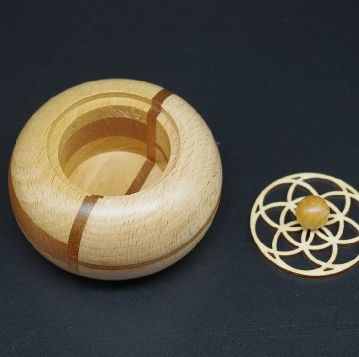 This delightful ring, trinket pot is made from Beech and Mahogany,