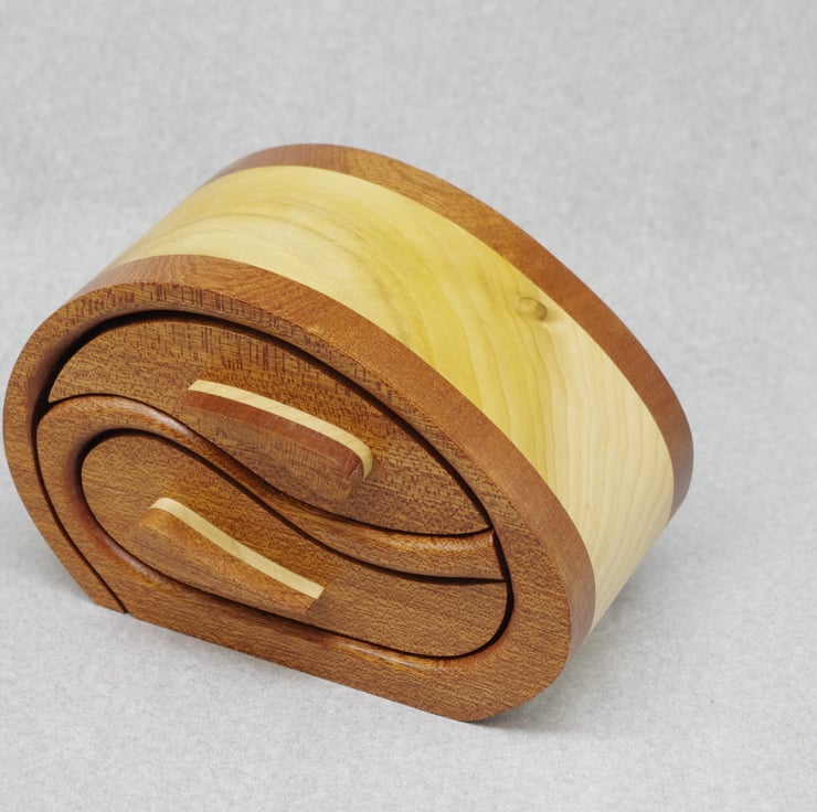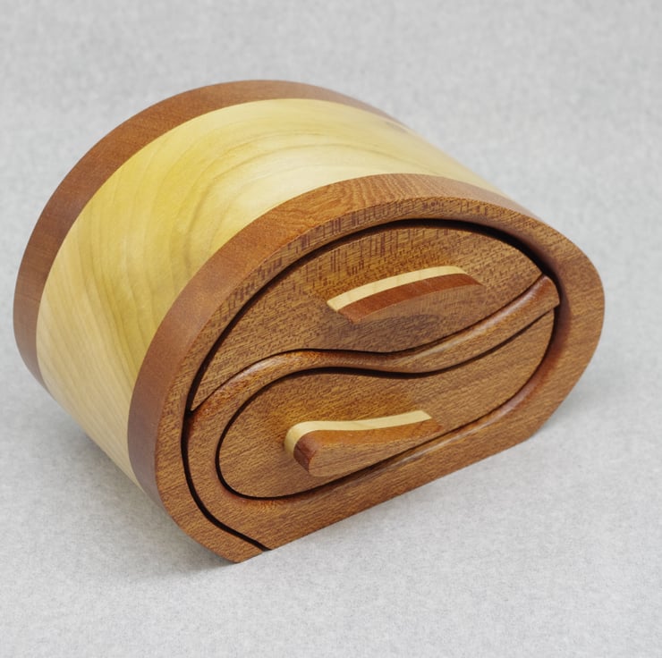 A delightful handmade two drawer wooden trinket, jewel box.