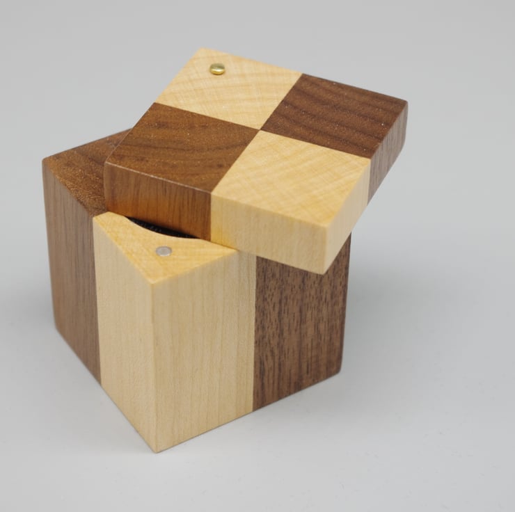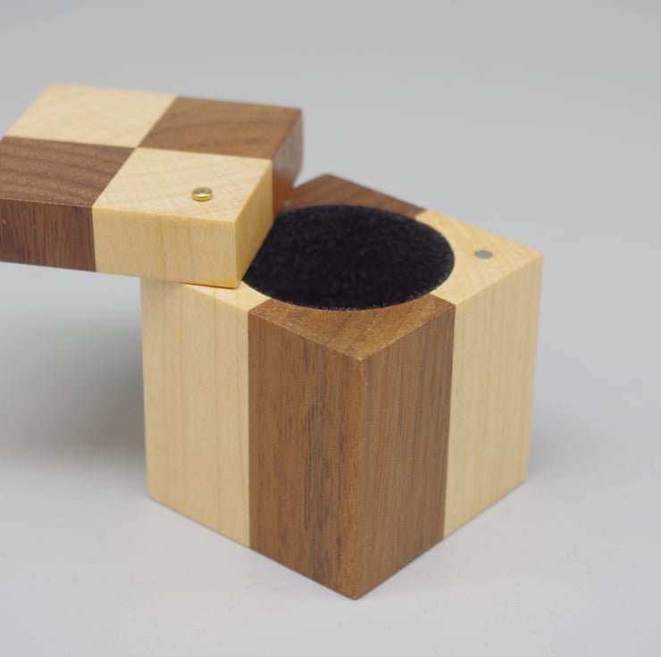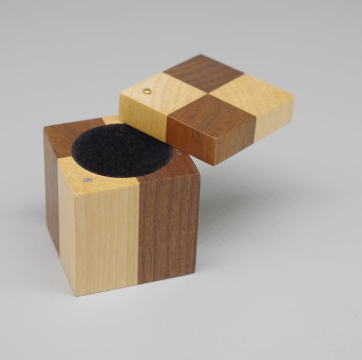 This delightful ring box is made from Beech and Walnut