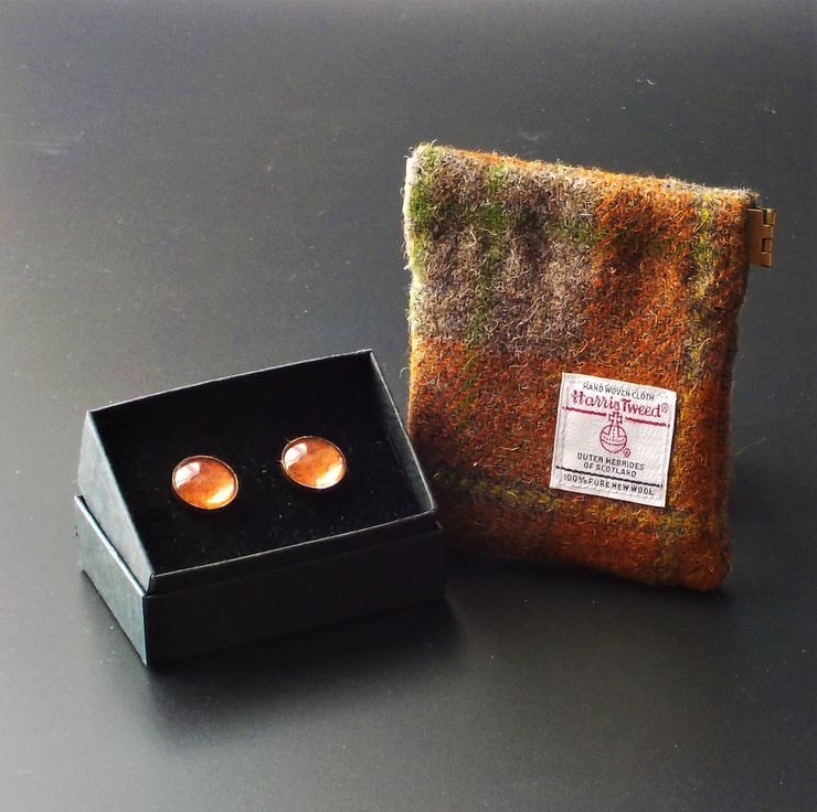This Harris tweed gift set is ideal for the man in your life. It features stylish handmade Harris tweed cufflinks for that special occasion, with a matching flex-top coin purse.