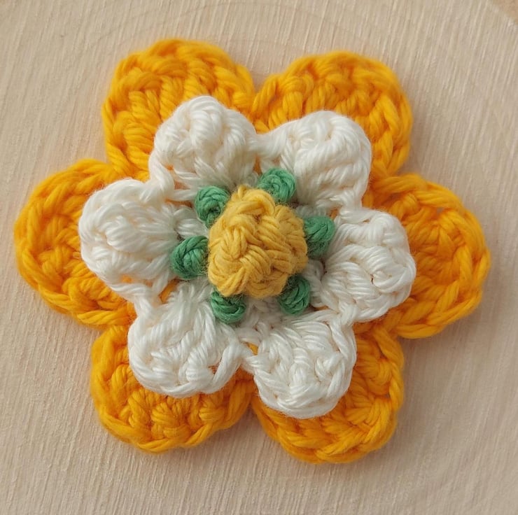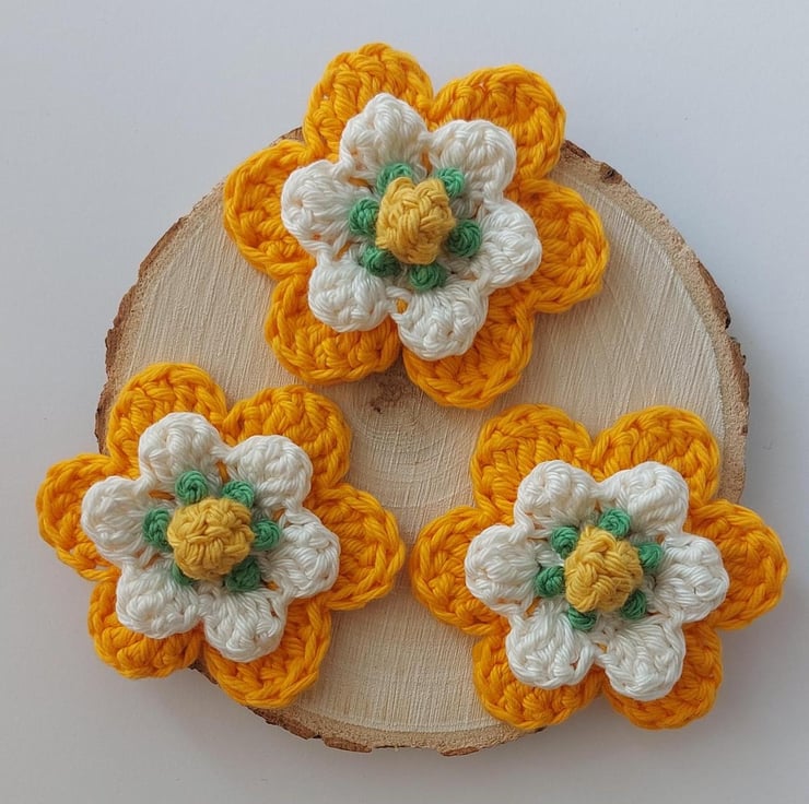 Set of 3 crochet flowers made from 100% cotton wool yarn