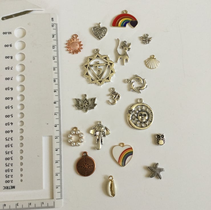 The necklace is approximately 43 cm long and the bracelet is 20 cm long and both have a brass toggle fastener. The bracelet can be extended, free of charge, if required. You also have the option of adding to or replacing the charms, also free of charge (see photo for choices).