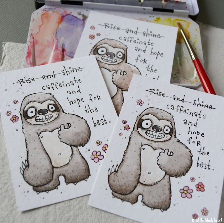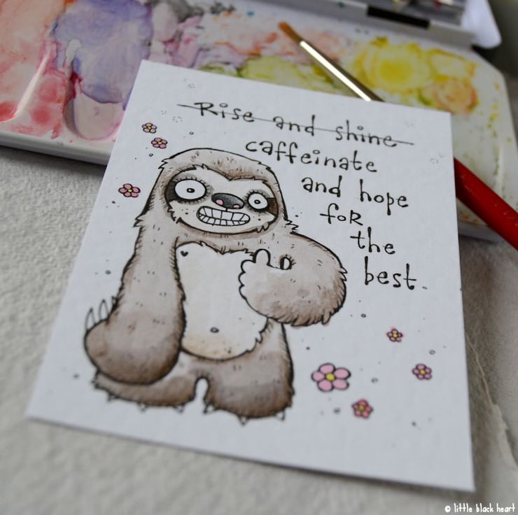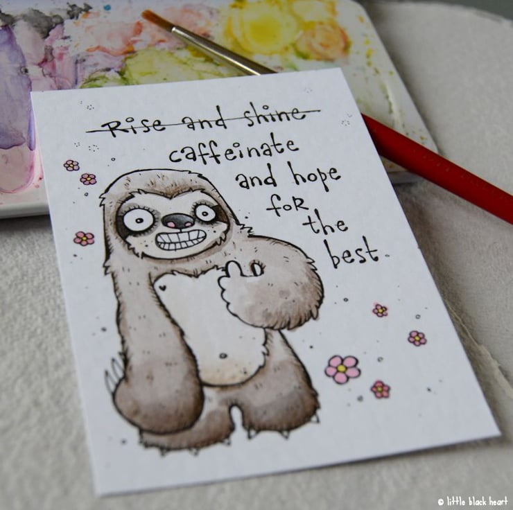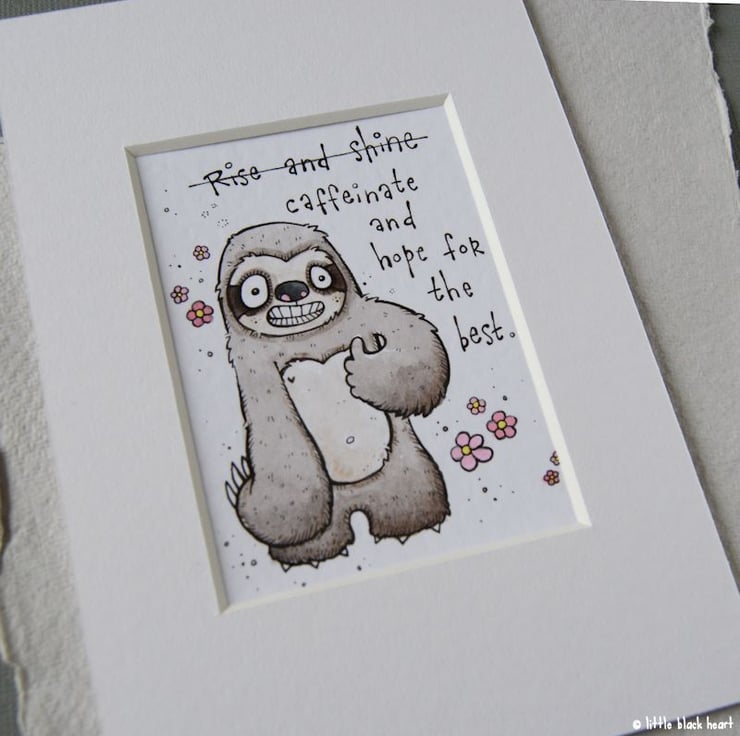 forget rise and shine, this little sloth knows the secret to success is strong coffee and hope!
