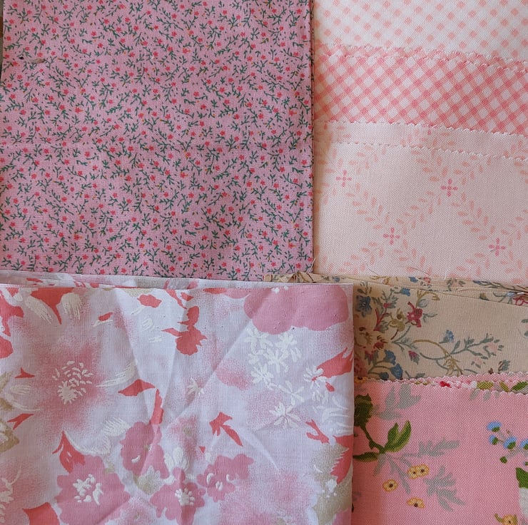 Fabric remnants bundle. Mostly cotton. Ideal for quilting, applique, textile art and other crafts. Pack contains several good size pieces along with other usable remnants. Please see photos for approx dimensions. Clean and mostly unused, but may need an iron.