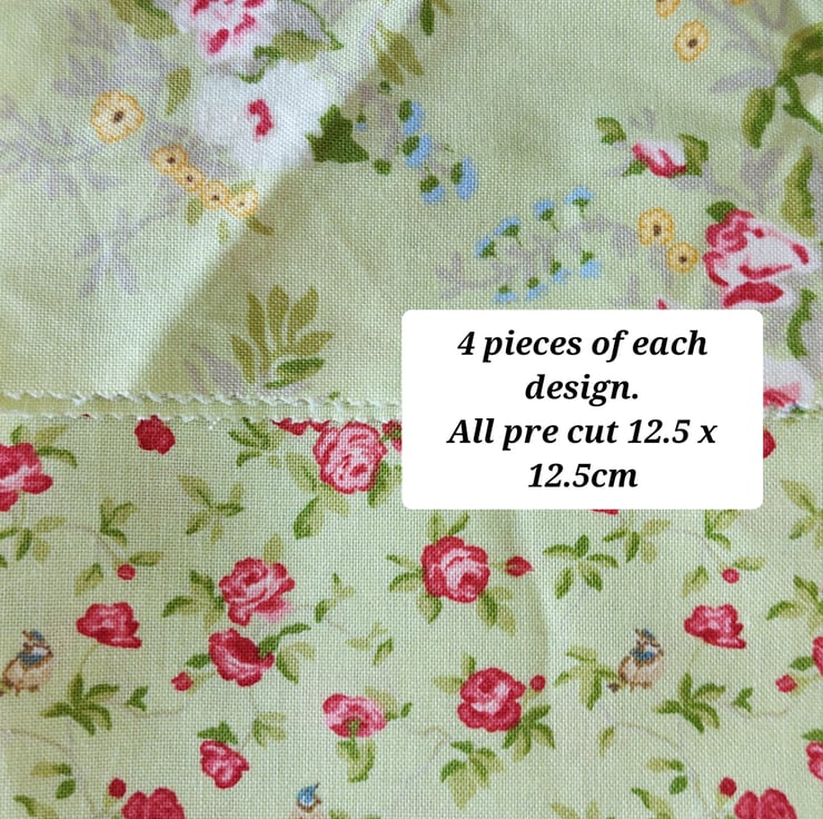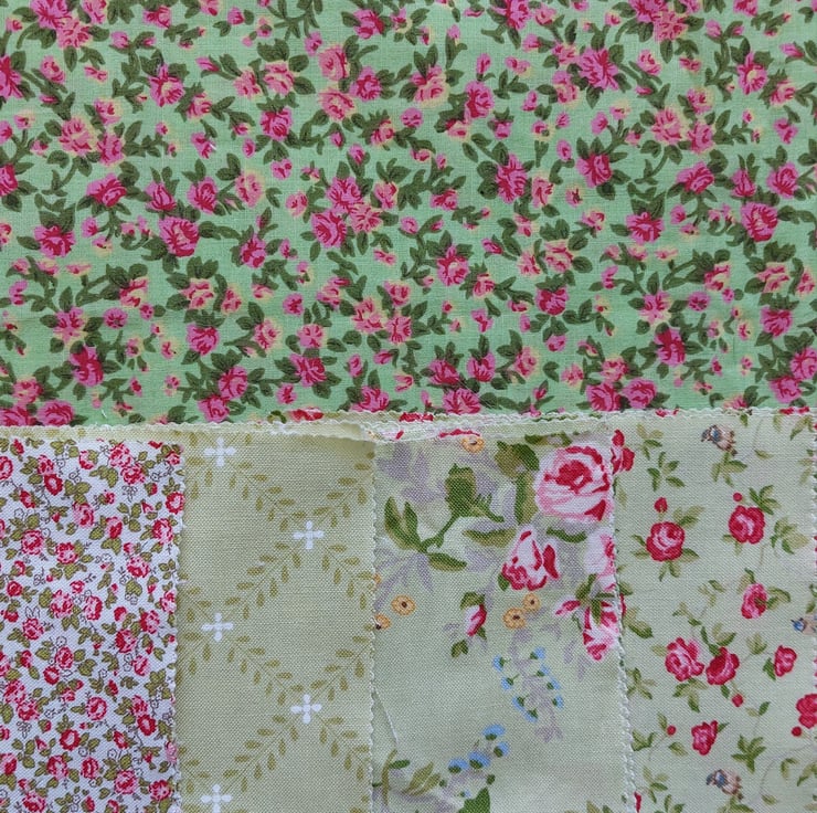 Mama bird has been tidying the nest! Fabric remnants bundle. Mostly cotton. Ideal for quilting, applique, textile art and other crafts. Pack contains several good sized pieces of green floral prints and other usable remnants. Please see photos for dimensions. Clean and mostly unused, but may need an iron.