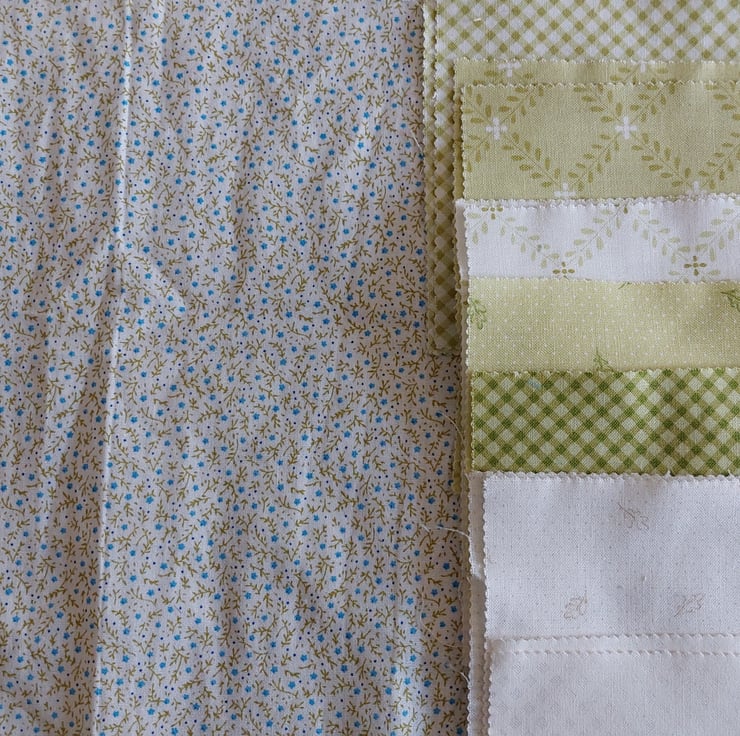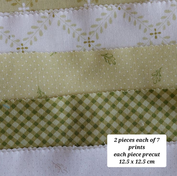 Mama bird has been tidying the nest! Fabric remnants bundle. Mostly cotton. Ideal for quilting, applique, textile art and other crafts. Pack contains a good sized pieces of green floral print and 14 pre cut squares of complimentary prints. Please see photos for dimensions and patterns. Clean and mostly unused, but may need an iron.