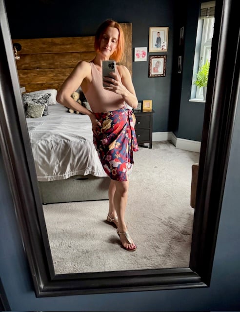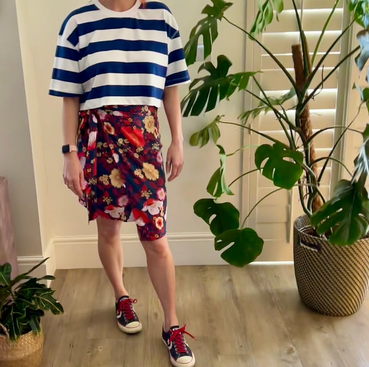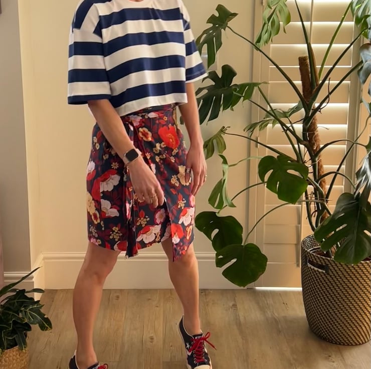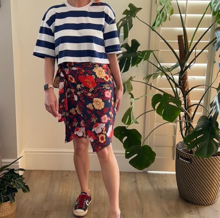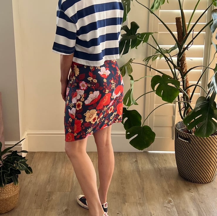 Our model is 5ft 7 inch and usually wears a size S (10) and is wearing the size 8 skirt in the images