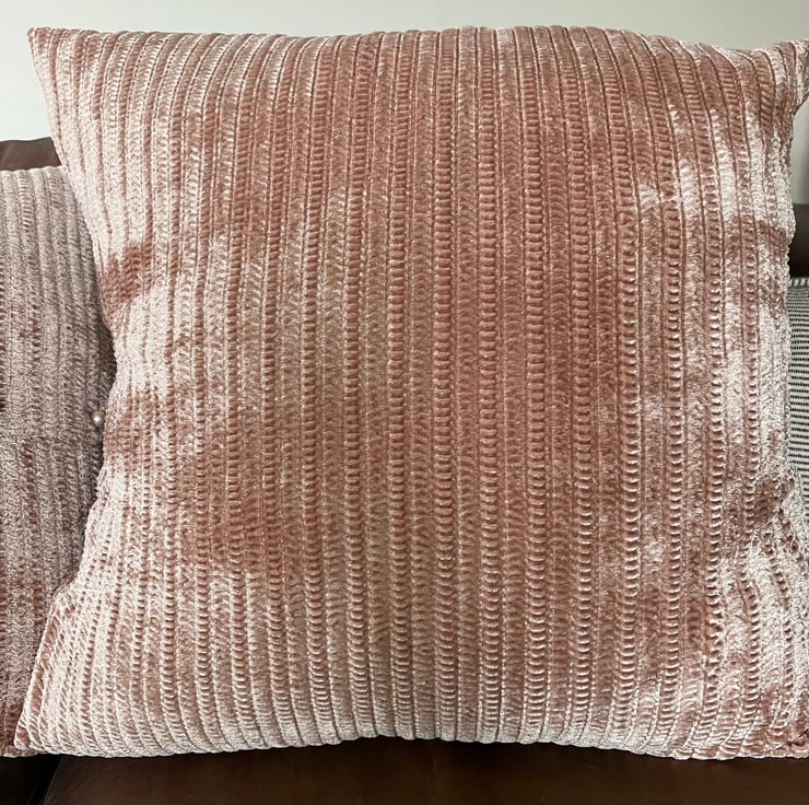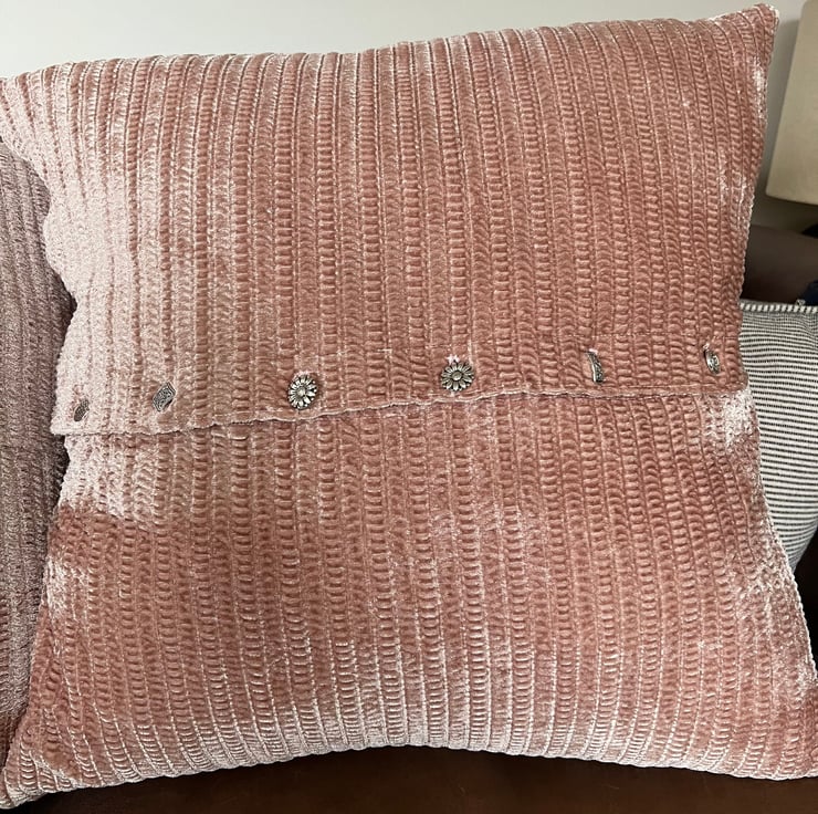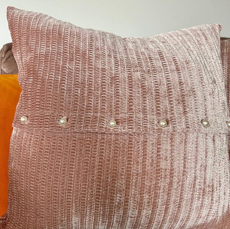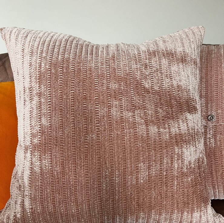 Handmade cushions (pad included) made from luxurious, pink velvet, finished with vintage style silver buttons or pearl effect buttons. Pair with our grey, velvet cushions.