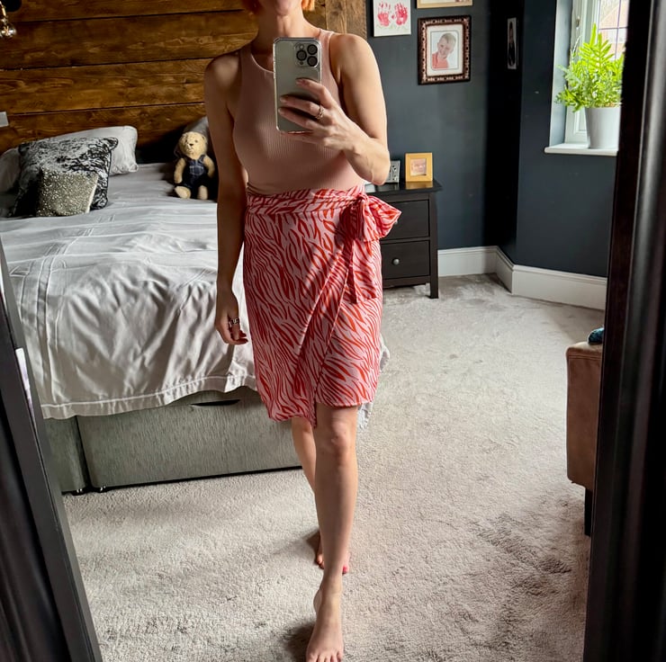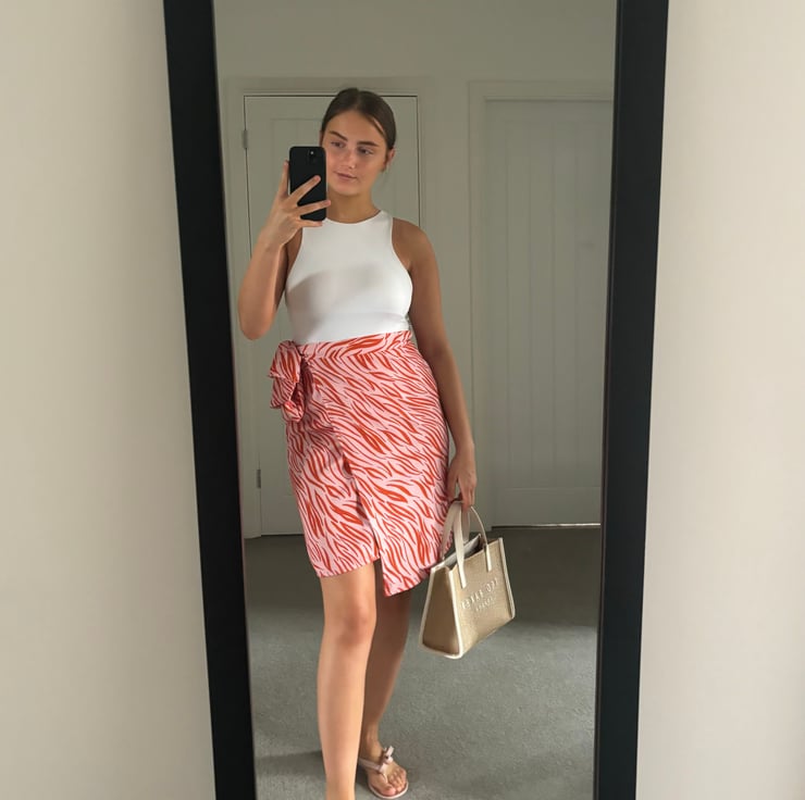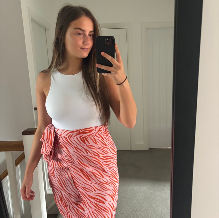 Our model is 5ft 7 inch and usually wears a size S (10) and is wearing the size 8 skirt