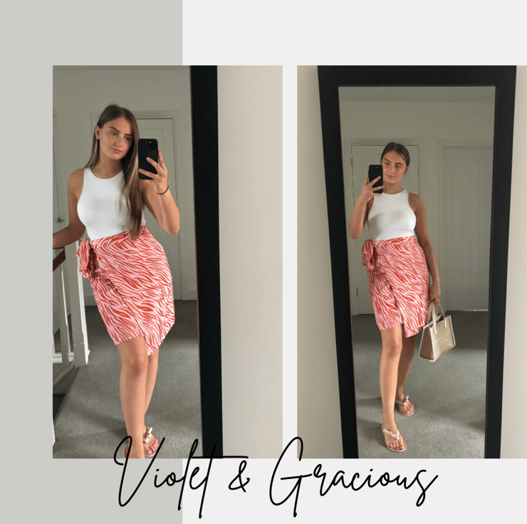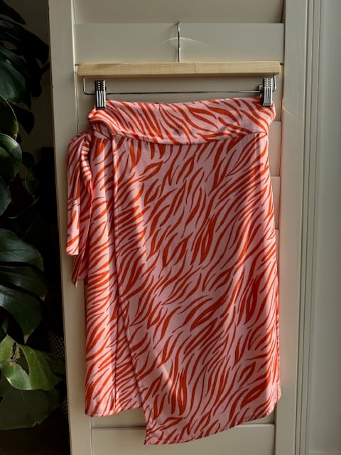 Inspired by our original Alexus Vegan Leather Wrap Skirt, our Nigella Wrap Skirt is a summery, delicate version finished in pink zebra stripes.